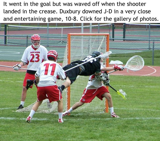 This would have been such a great story: “Duke goalie Dan Wigrizer struggles through three quarters, making only four saves while allowing nine goals. John Galloway, the former Syracuse University superstar goalie and now a volunteer assistant coach at Duke, yanks Wigrizer from the game and gives him a pep talk. Wigrizer returns in the fourth quarter and makes three incredible saves to lead the Blue Devils to a 12-10 victory.”