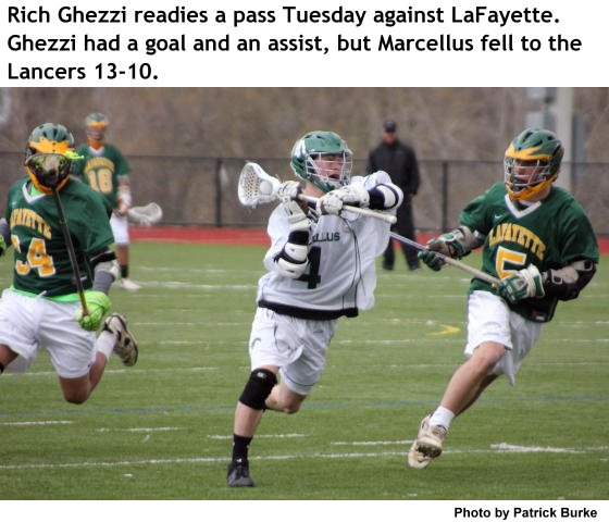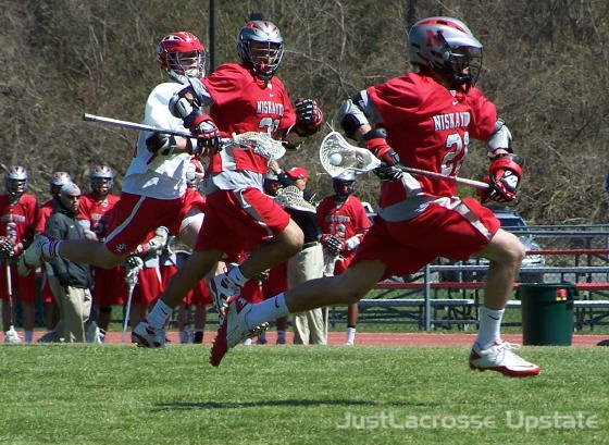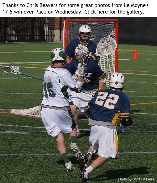 Comparatively fewer miles this week, but no less lacrosse. Caught the Brockport vs. Cazenovia non-league game on Tuesday at Caz, the Brockport vs. Oswego SUNYAC opener in my own backyard on Friday, and then drove up to Carthage on Saturday to help coach the Oswego HS Bucs against the always-good Comets . . .