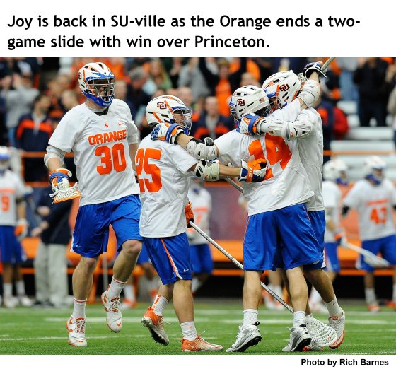 Princeton jumped out on Cornell quickly and surged to a 14-9 victory over the Big Red on its Senior Night, capturing the outright Ivy League title in the process. Cornell slipped to 9-3 (4-2 Ivy), while the Tigers moved to 10-3 (6-0 Ivy). With the win, Princeton will host the 2012 Ivy League tournament beginning on Friday, May 4 at Class of 1952 Stadium. Cornell will be the No. 2 seed and will play Yale at 5 p.m., while the the Tigers will play No. 4 Brown at 8 p.m. THe championship game will be played on Sunday, May 6 at noon.